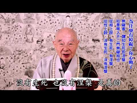 《往生論》裡頭也有講,「無礙者,謂知生死即涅槃,如是等入不二門無礙相也」。生死跟涅槃是兩樁事情,從相上說,有生死、有涅槃;從性上說,沒有生死,也沒有涅槃,是真的。能大師說得很好,「何期自性,本不生滅」,不生不滅,「何期自性,本無動搖」,他見到了。我們沒見到,以為它有障礙。真的它才有障礙,以為有障礙是念頭,真的有障礙是事相。它為什麼有障礙?因為你心裡動了,以為它有障礙,它真變成障礙。阿羅漢六種神通具足,他有沒有障礙?他沒有了。為什麼他沒有了?他沒有執著,所以他就沒障礙。