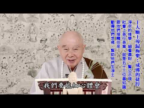 ◇淨宗的修學:細看善財、賢公示現,社會上各行各業,就是五十三位善知識。跟他們接觸往來,勸導他們念佛,幫助他們生淨土